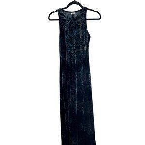 La Senza Crushed Velvet Sleeveless Dress Sz S | Blue Gray Keyhole Back High Neck