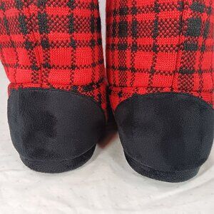 La Senza NWOT Red Black Plaid Faux Fur Lined Knit Bootie Slippers Women's Size Large 9-10