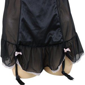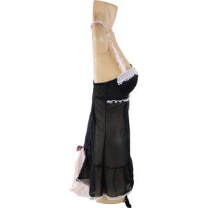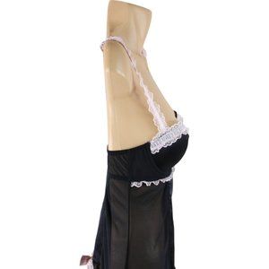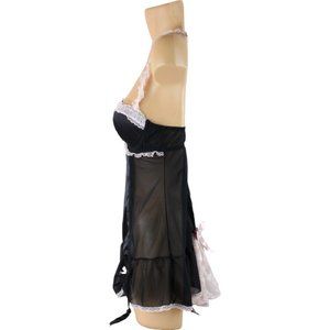 La Senza Negligee Black Pink Medium Ruffles Lace Garter Straps French Maid N122