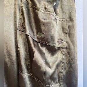 La Senza Olive Green Cargo Style Silky Wide Leg Pants w Adjustable Leg Openings