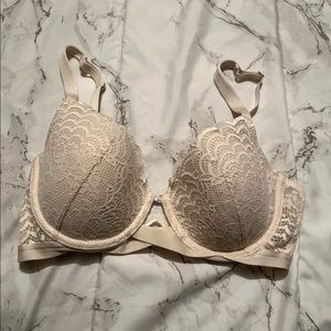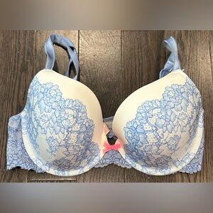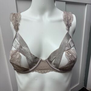 Gorgeous and feminine lace bra in a size 34DD. Adjustable straps, underwire and minimal padding. Lovely lace details in excellent shape. Clean and non smoking.