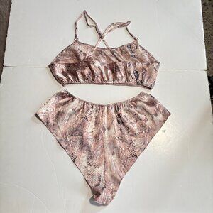 ✦La Senza Two Piece Satin Sleep Set Pink Snake Print