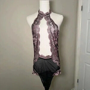 La Senza Women's Black Lace Vest Panties Set Lingerie Body Suit Intimates Medium