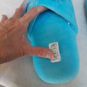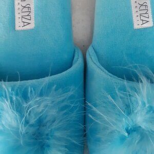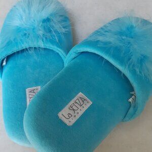 La Senza soft slip-on sky blue slippers with feather accent Size S 5-6
