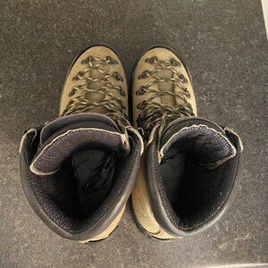 Good Used Condition. Leather. midsole and sole are all in excellent shape but the rubber at the toe has separated on both the left and right boots. Can be managed and/or repaired. Price reflective.