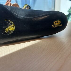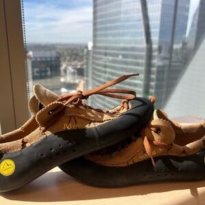 La Sportiva's unisex women’s 9.5 in very very very good condition climbing shoes made it Italy 🇮🇹 designed in a sleek tan and black colorway. These shoes offer exceptional support and durability, making them ideal for any athletic pursuit. Experience the perfect blend of style and functionality with every step.