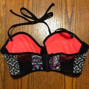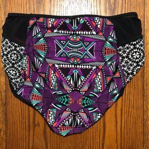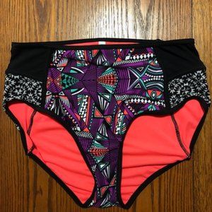 Like New - A two piece bathing suit from La Vie En Rose - Super bright colours and unique design. A corset style top with removable straps and high-waisted bottoms with sheer side detail. size Large
