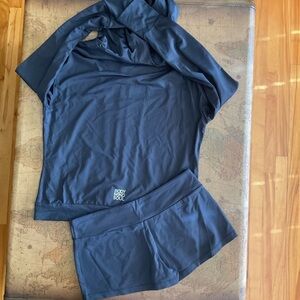 Stylish black hoodie with matching shorts. Comfortable and chic. Perfect for casual wear. Very good condition Black zip up hoodie and matching shorts