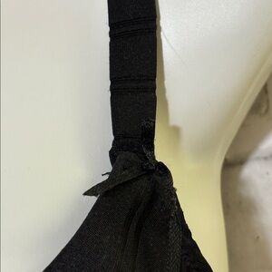 Chic black bra with silver ring accent. Ideal for stylish comfort.