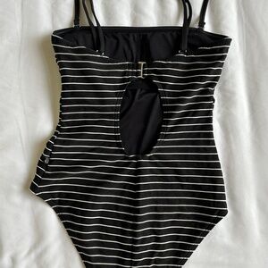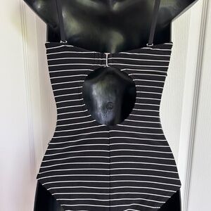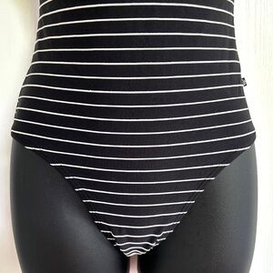 La Vie En Rose One Piece Swimsuit Size XS Black White Stripe Tank Aqua Rose