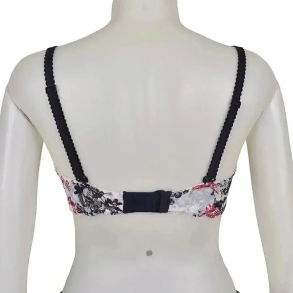 La Vie En Rose Red White Blue Floral Lace Bra Size 36DD