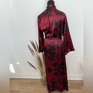 La Vie En Rose Red and Black satin like Robe flowy and. Floral