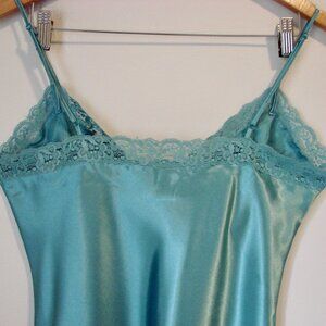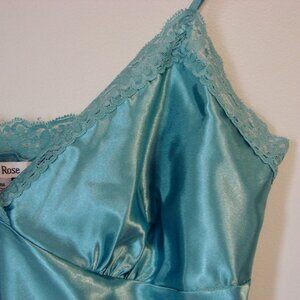La Vie En Rose Satin Lace Camisole Turquoise Blue Green Babydoll Medium Large