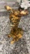 La Vie safari figurines are made of ceramic or porcelain. They are decorated with a patchwork or decoupaged fabric that features a safari animal print and is finished with a heavy glaze or lacquer