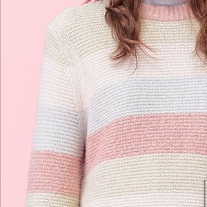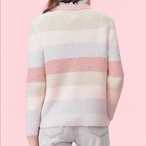The soft pastel hues on this tight knit merino pullover pairs perfectly with the season's pale wash denim. A feminine take on stripes, the classic cut and easy fit make for a relaxed, cozy style.