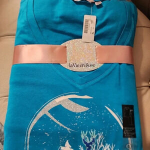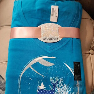 La Vie en Rose 2pc Pajama Set Cotton Shirt Long Sleeve Fleece Pants XL