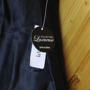 La Vie en Rose Black Satin Nightie Lace Metallic Gold Small New with Tags SW15
