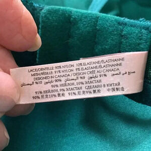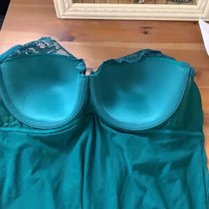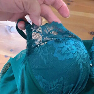 Perfect for a special occasion! This is in like new condition and is a beautiful shade of green. This has padded cups and underwire for a push-up effect.