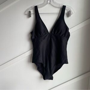 La Vie en Rose Plunge Textured V-neckline Black One Piece Swim Size M