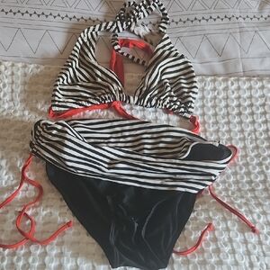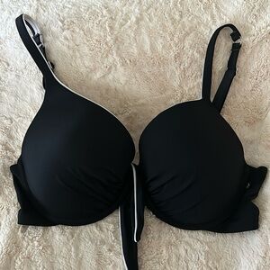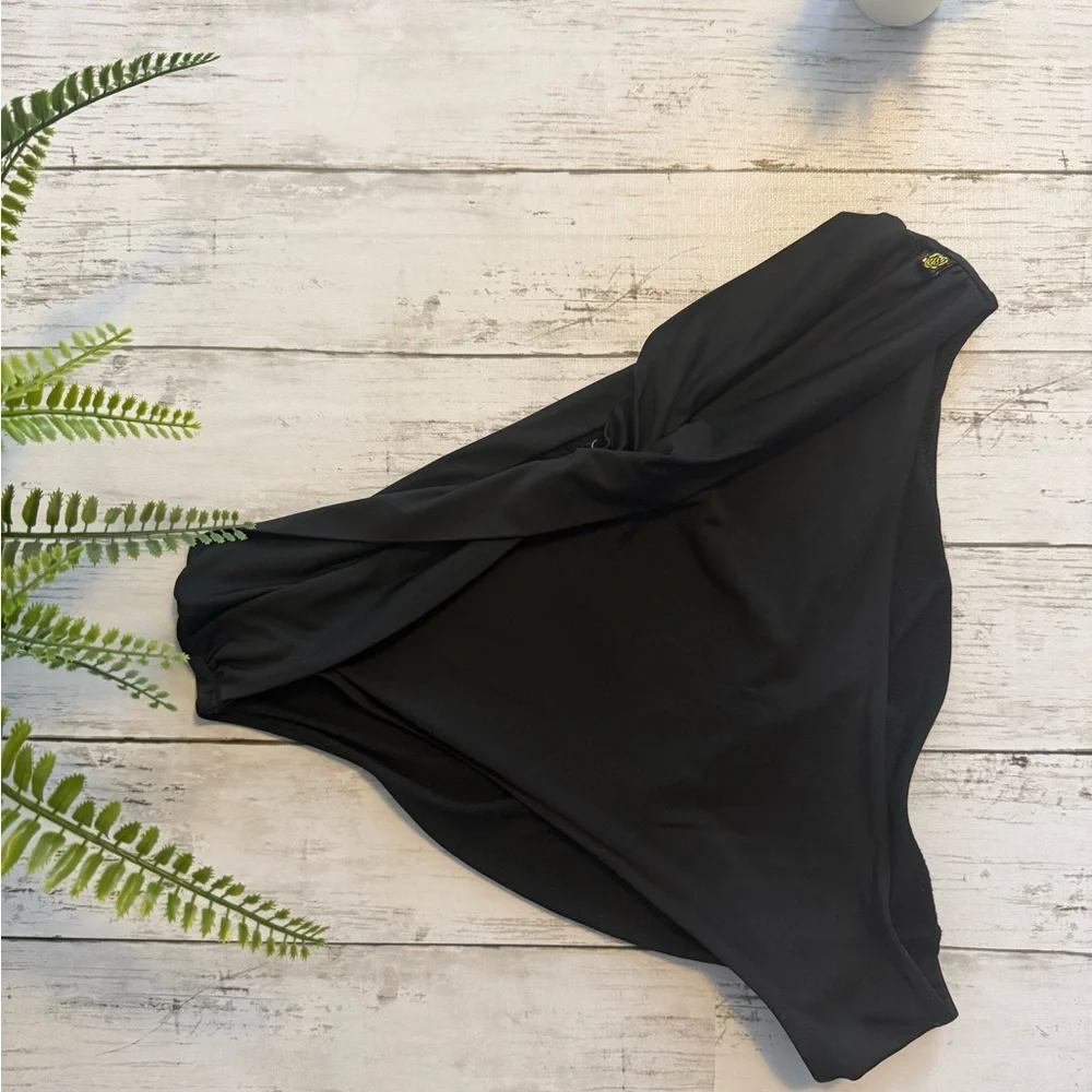 Classic black bikini bottom by La Vie en Rose with a flattering twisted/crossover waistband detail and side ruching. Easy staple to mix & match with any swim top. Perfect for beach days, pool days, and vacations.