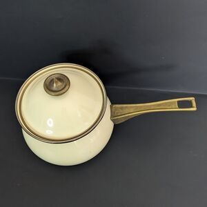 La cuisine Galistyne Sutton enamel cookware lidded stockpot cream gold