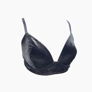 Experience comfort and style with this elegant black velvet bralette. Perfect for any occasion, it offers a sleek and sophisticated look. no close up clasp on the back it is a pull over.