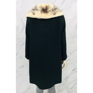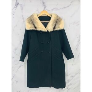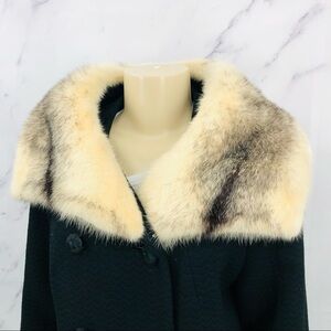 La-Blau New York Vintage Wool Double Breasted Pea Knee Length Coat Fur Collar