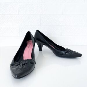 La Scarpa Womens Leather Ruched Pointed Toe Kitten Heel Slip-on Pumps Black 37