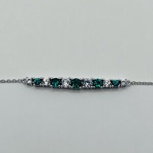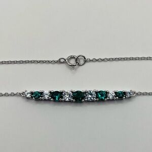 Lab Green Emerald and White Sapphire Bar Silver Necklace