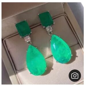 ❤️ Lab-Created Emerald and White Sapphire Teardrop Earrings