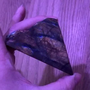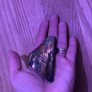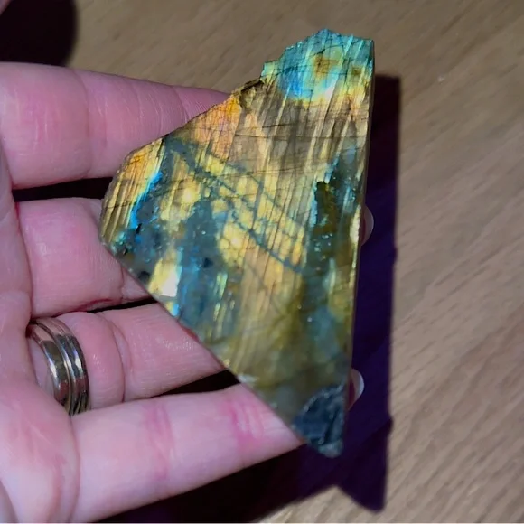I have a lovely flat piece of labradorite that I’m ready to pass onto someone else who will love it. It has a lot of warm tones with splashes of vibrant blue/aqua. It’s polished on one side and matte on the other. Both sides have flash. The video shows this well.