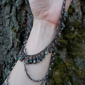 Stunning labradorite pears electroformed in Copper paired with two strands of oxidized copper wire wrapped labradorite rounds.