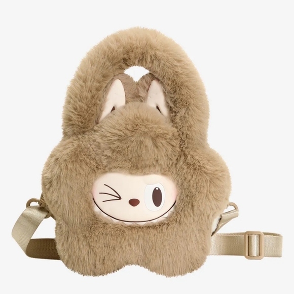 Labubu Classic Series Plush Flower Shoulder Cross Body Bag - Brown