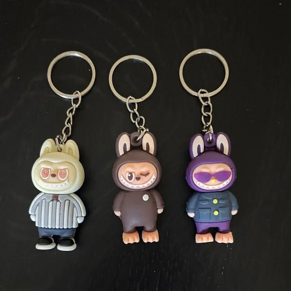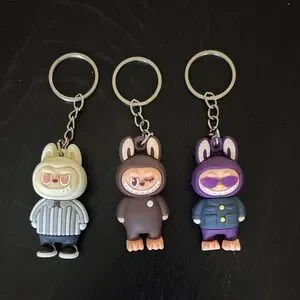 Set of three adorable Labubu keychains.
