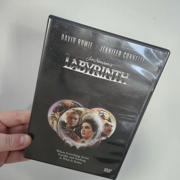Experience the magic of 'Labyrinth' on DVD. Featuring a sleek black cover, this classic film is a must-have for any collection.