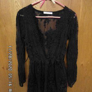 This cute lace, long sleeve black dress is perfect over a swimsuit. It can also be worn over a simple black dress and if interested I have a small body con dress from Forever 21 (with tags on) that I can throw in for free !