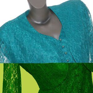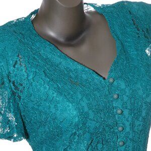 Lace DRESS & BOLERO 2 Pc. Set Vittoria Virini Teal Aqua Green Floral Vtg 80s-90s