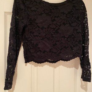 Black Lace Detail crop top. Body not see through. Sleeves see through.