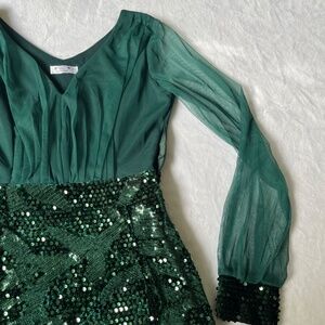 Top - mesh with lining, bottom - stretch velour with sequins