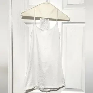 Chic white tank featuring a lace back. Ideal for layering or casual wear.