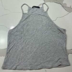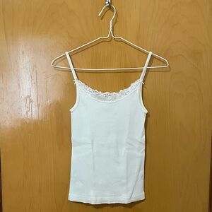 Elegant ribbed tank top with delicate lace trim. Perfect for layering or wearing.