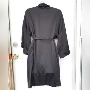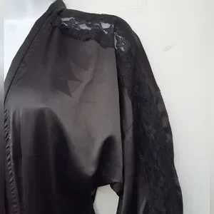 elegant black robe featuring delicate lace trim