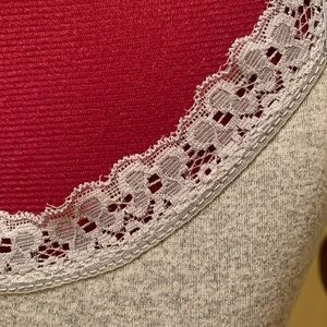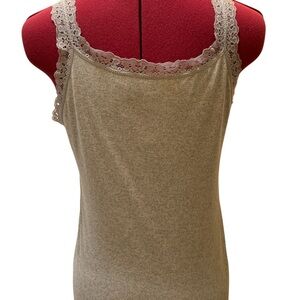 Elegant in grey, black and white tank top with delicate lace trim. Perfect for a casual yet chic look.