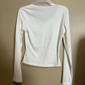 Lace Trim White Ribbed Knit Top from Emmiol!