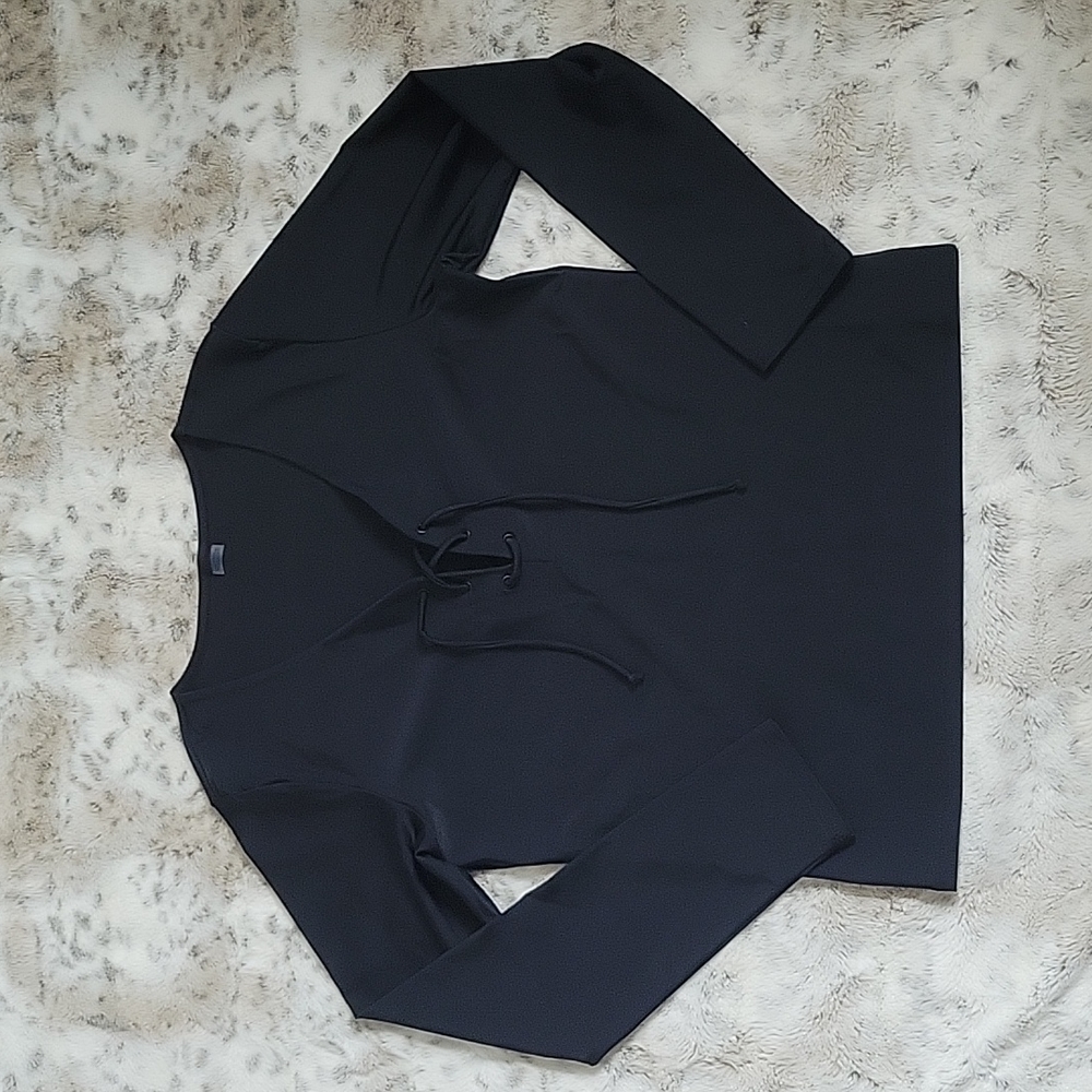 Black lace up rash guard. Size large. Never worn. Pit to pit approx 18in. Length approx 23in.