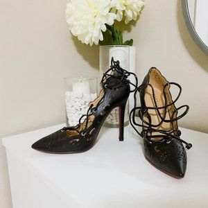 Jojo Cat lace up leather stilettos. Perfect condition. Red bottoms. Never worn.