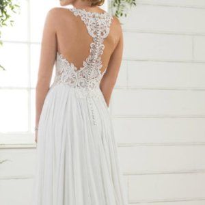 Lace and crepe chiffon, deep sweetheart neckline, ivory