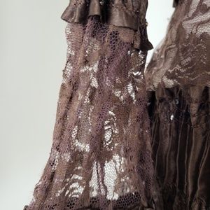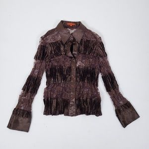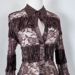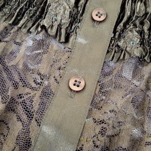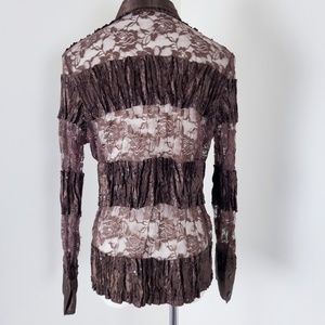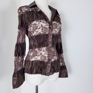 Lace long sleeve blouse button down sheer satin patchwork crinkle