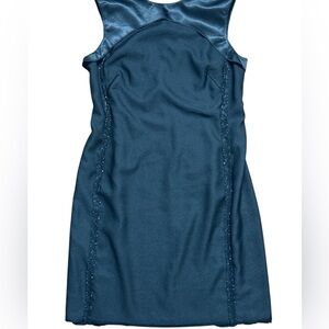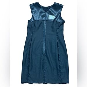 Made in Canada! Classic style dress made fancy with allover lace. Bust darts for shaping. Slight V-neck in the back. There are no side seams on this dress; the princess seams create the feminine silhouette. Soft satin lining. I've included pictures of the inside - they look sort of blue, but it is the same dress.
