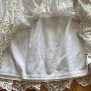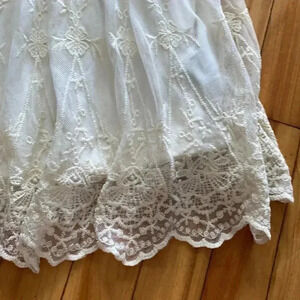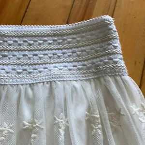 Off white color skirt with lining. Thick elastic waist. A little mark shown in last pic